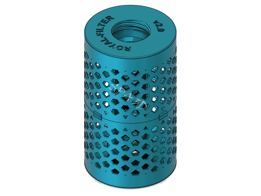 Má válcovitý tvar, jeho spodní část je opatřena vyměnitelným adaptérem závitu nebo jen otvorem v závislosti na typu filtrační armatury v dané vířivce. Spodní třetina délky ROYAL FILTRU je pevná plná stěna po celém obvodu, horní dvě třetiny jsou perforované a také je perforované horní víko ROYAL FILTRU. Od spodního sacího otvoru až do délky dvou třetin ROYAL FILTRU je umístěna středová perforovaná sací tryska, která má ve svém ústí plnou pevnou stěnu, která vymezuje prostor pro odkalovač ROYAL FILTRU. V této úrovni je umístěna po celém obvodu mřížka odkalovače, která odděluje odkalovací prostor od ROYAL multifunkčního mikrofiltračního média.